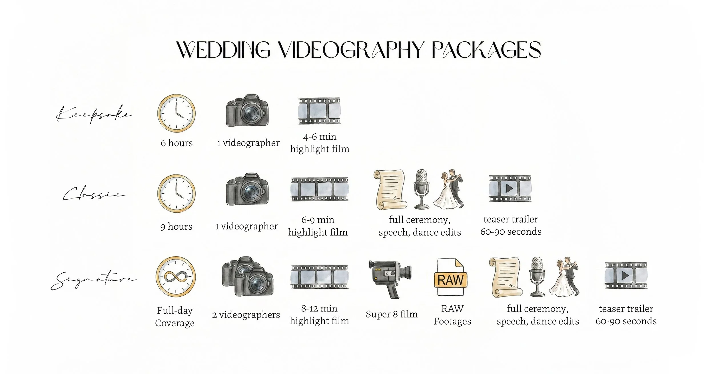 + full-length, multi-angle edits of ceremony, speeches, first dance edits